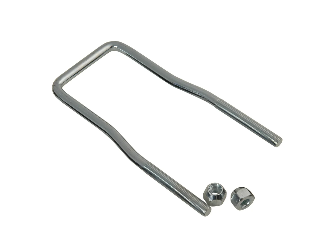 Strong 7/16″ rod construction fits on frame, tongue, or rails up to 3″ wide. The 3″ of threads fit a wide variety of frame thicknesses and wheel sizes. Holds 4 or 5 lug wheels and fits 8″ throught 14″ wheels and most 15″ wheels.