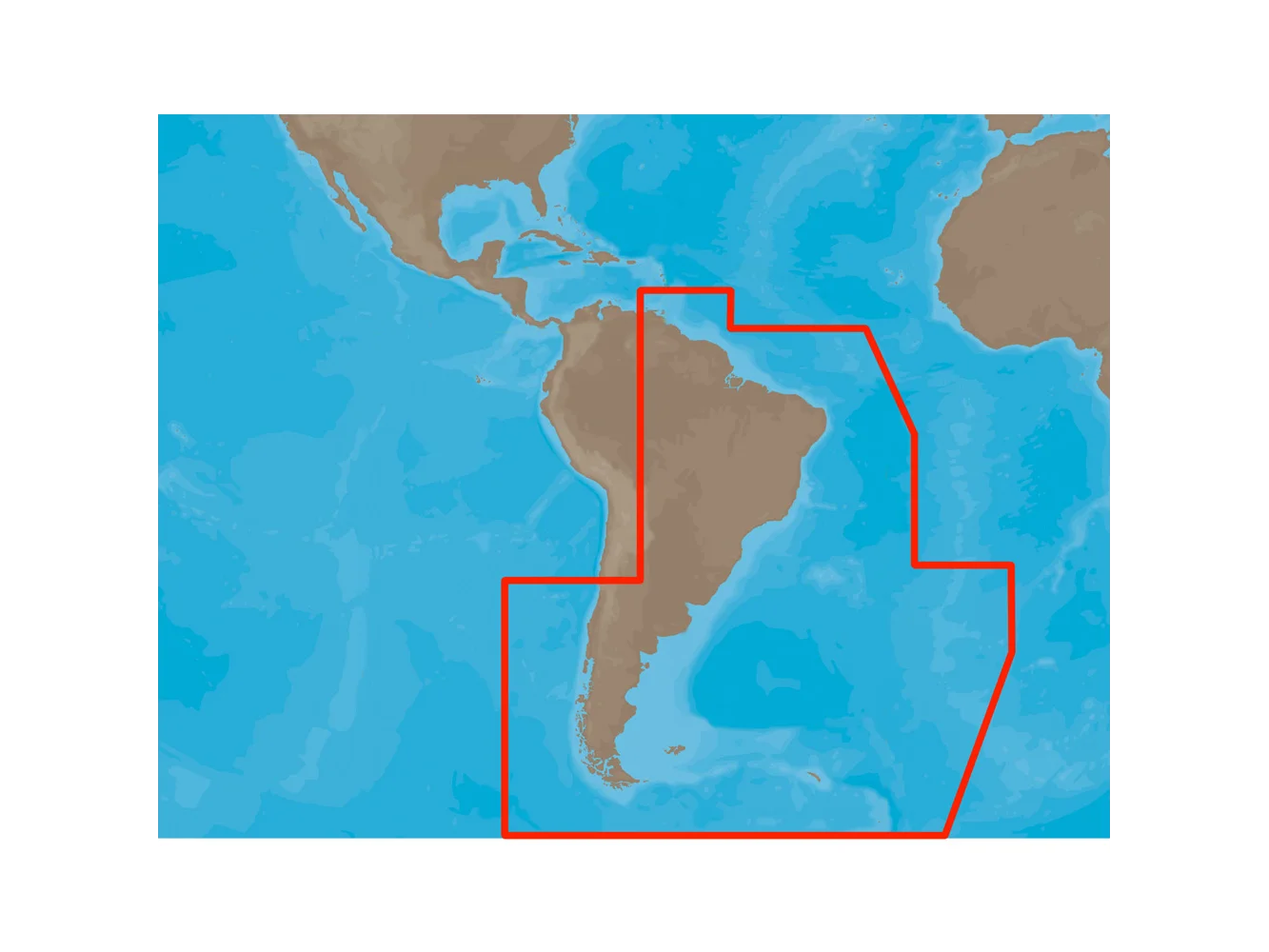 Coverage starts at Quintero, Chile on the Pacific coast and extends south down the Chile border, wraps up around Cape Horn and continues up the Atlantic coasts of Argentina, Uruguay, Brazil, French Guiana, Suriname, Guyana and into Venezuela, ending at Punta Carenero. Coverage includes Trinidad, Tobago and the Caribbean Islands of Grenada, Carriacou, the Grenadines, St. Vincent and Barbados. Also includes coverage of the Amazon River to Manaus, BrazilThis product may not be returned to the original point of purchase. Please contact the manufacturer directly with any issues or concerns.