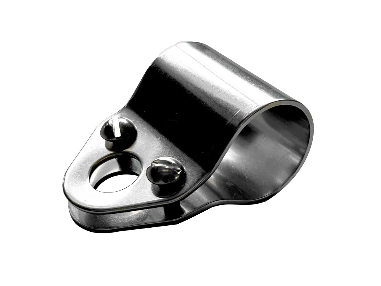 This fitting can be used on the stern rail and bow pulpit to terminate jaw fittings for lower or upper life lines. (1/2″ hole). The hole will not accept cast gate hooks.