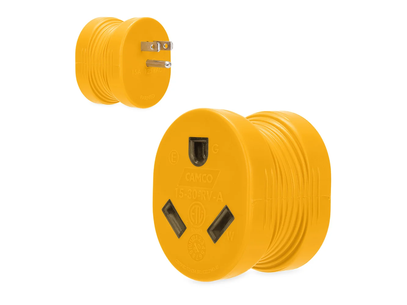 Effortless RV Power Converter: Camco's Power Grip 15-to-30A RV Plug Adapter delivers reliable power for your RV. Easy connect your 30-amp RV to a standard 15-amp residential outlet with this dependable & user-friendly electrical RV converter.