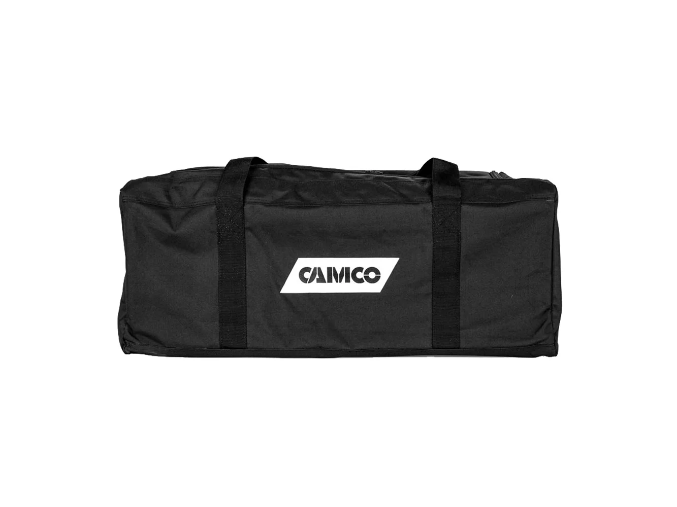 The Camco All-Purpose RV Storage Bag securely holds RV equipment, such as items for stabilization, electrical, and more. Made of heavy-duty material, the bag includes a padded interior.