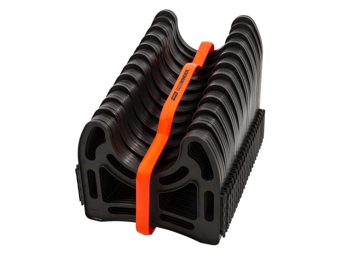 Sewer Hose Supports were designed to go around any obstacle and allow proper drainage. Sturdy, lightweight plastic support with strong snap-fit hinges has deep cradles to hold the sewer hose in place without straps. No staples to rust. Easily positions around obstacles and stays where you put it. Won’t creep closed. 43031, 43041, and 43051 come with a convenient handle; 43061 comes with a carrying strap, to make storage even easier. Patented and patent-pending.