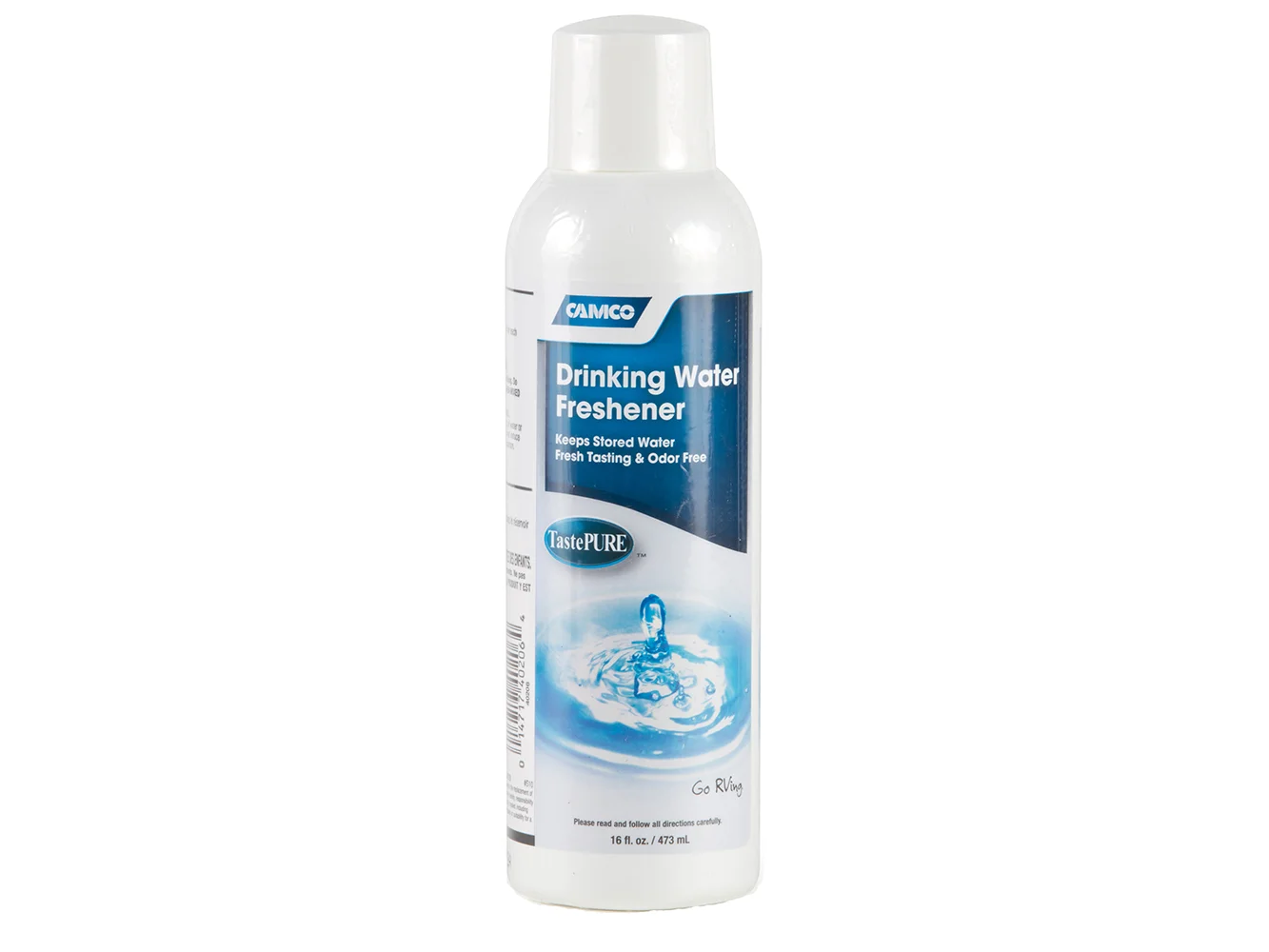 Camco TastePURE Drinking Water Freshener helps to eliminate algae and slime from your drinking water tank. Just 1 ounce for every 20 gallons of water helps remove bad smells and tastes.