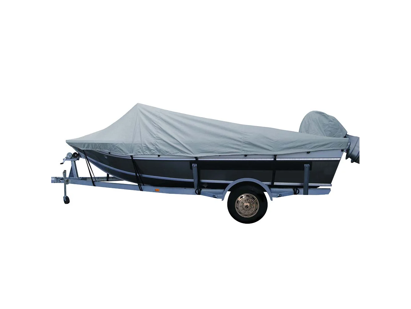 Poly-Flex II Styled-to-Fit Boat Cover for 16.5′ Aluminum Boats with High Forward Mounted Windshield – Grey