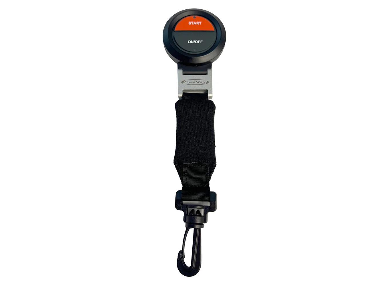 The CoastKey 2-button FOB is included in the CoastKey Standard System and is used to remotely start the engine(s). When the FOB is used to switch on the ignition, it is not necessary to enter the PIN code. The FOB also functions as a wireless engine kill switch. It is possible to pair several FOBs to one Start Panel (a maximum of 10, and only one can be used at a time).