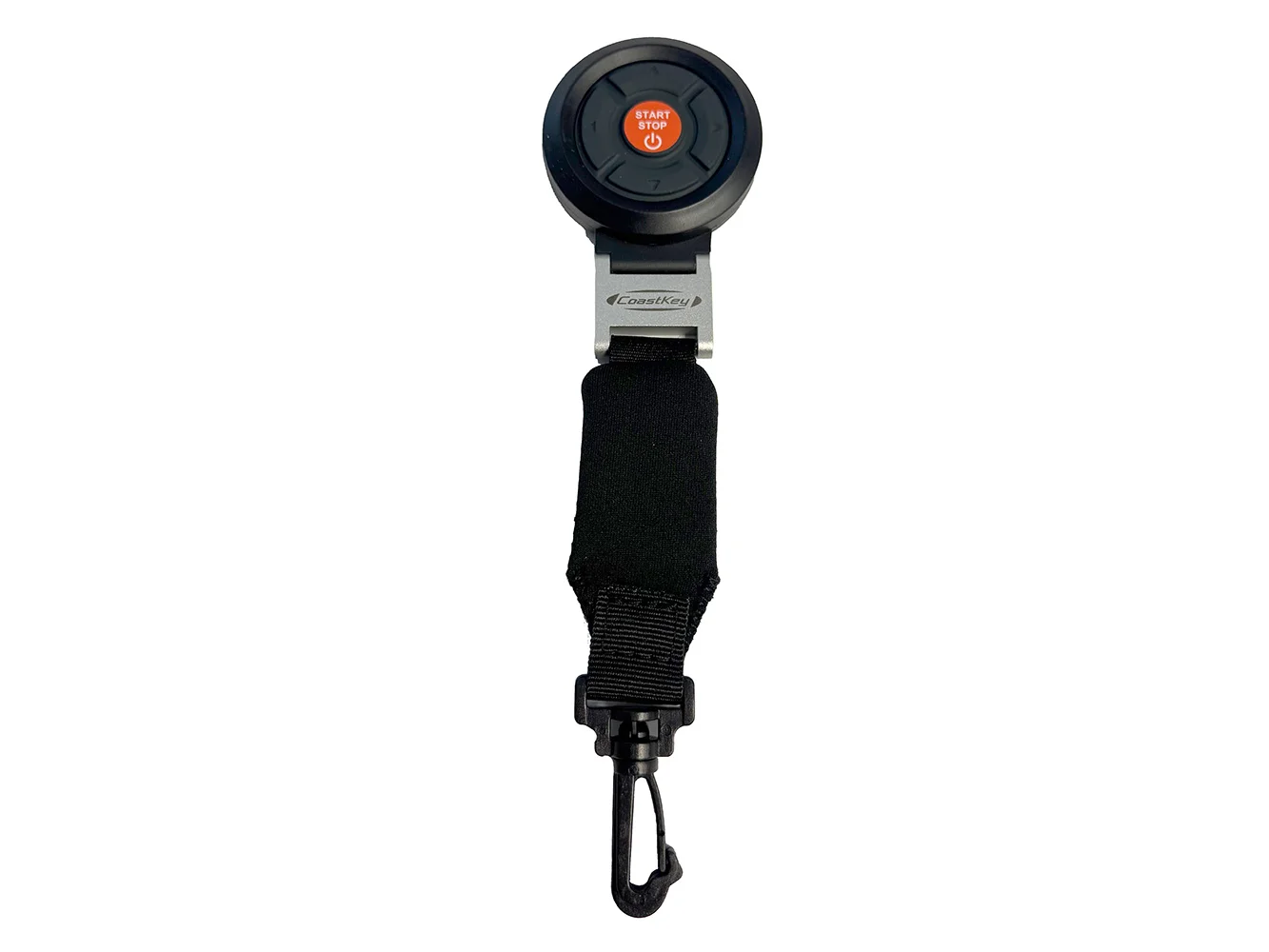 The CoastKey 5-button FOB is used to start the engine(s) remotely. The FOB also serves as a wireless kill switch and can be used for additional functions, such as remote trim/tilt.