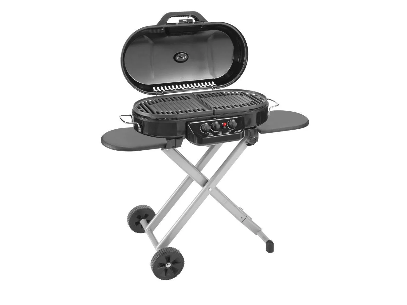 The Coleman RoadTrip 285 Portable Stand-Up Propane Grill features sturdy quick-fold legs and 2 wheels for hassle-free setup, takedown and transport so that taking your grill on a camping trip or to a tailgate is easy. Push the Instastart ignition button for matchless lighting, then select your heat with the enhanced temperature control of 3 independently adjustable burners (outer left, inner, outer right). With a range of grilling power from 3,250 BTUs to 20,000 BTUs and 285 sq. in. of cast iron grill grates coated in porcelain, you’ll wow your friends and family with an array of perfectly cooked meats, seafood, or veggies every time. If you’re looking for more meal options, the Swaptop interchangeable cooktops let you switch the grill grates with a griddle or stove grate (both sold separately). With 2 sliding side tables to keep utensils and sauces handy, cooking with this grill is just as convenient as traveling with it. Bonus: The RoadTrip 285 Portable Stand-Up Grill can be stored upright (to fit in tight spaces) until your next cookout. Uses a 1 lb. propane cylinder (sold separately).