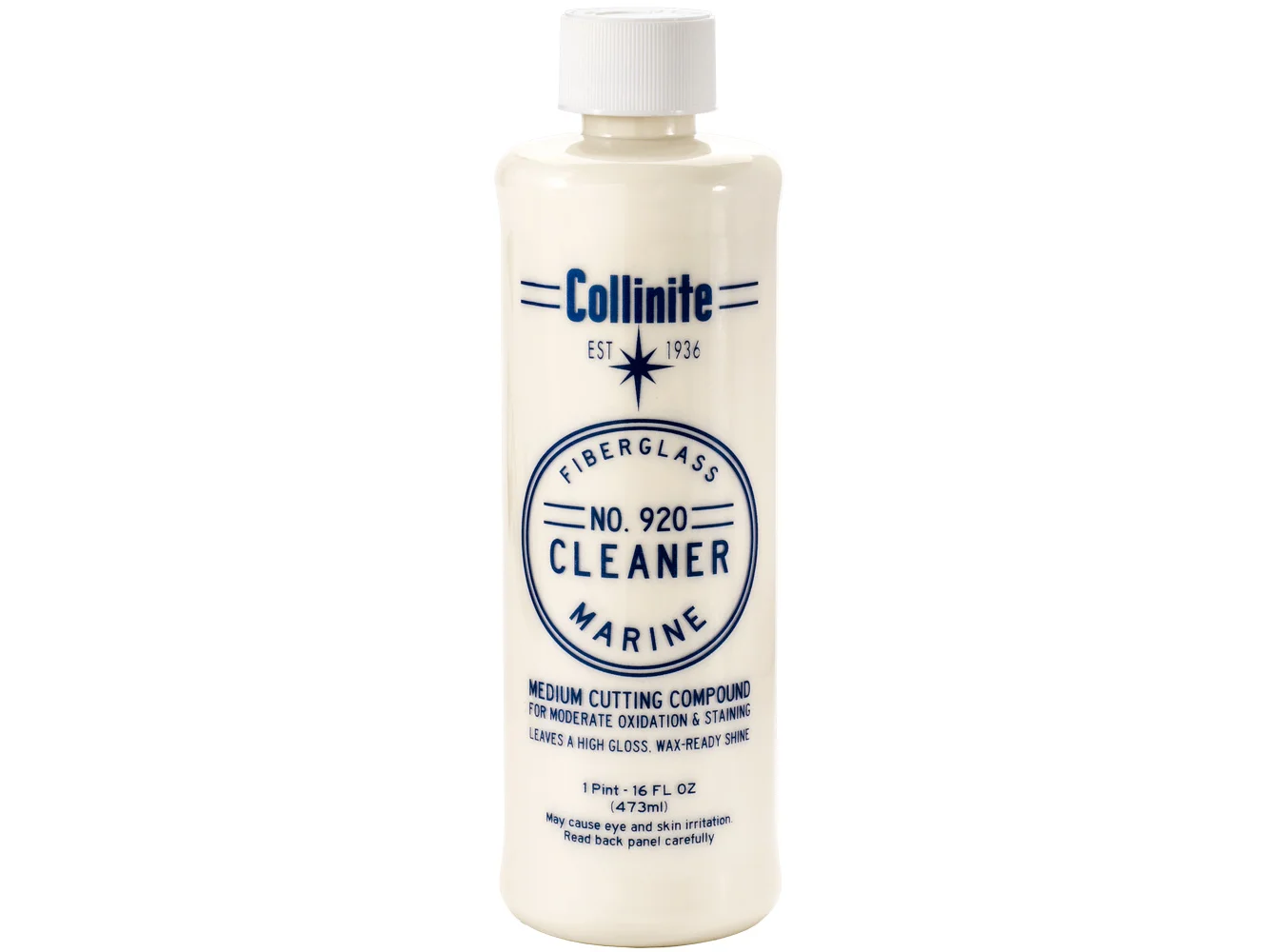 The ideal pre-wax item, No.920 cuts fast and finishes the smooth-removing film, mild-moderate UV oxidation/chalkiness, discoloration, and tough stains from fiberglass. Easy-to-use compound restores original color and gloss to facilitate the easy application of Collinite’s last-step waxes; improving wax bond, spread/coverage, and durability.