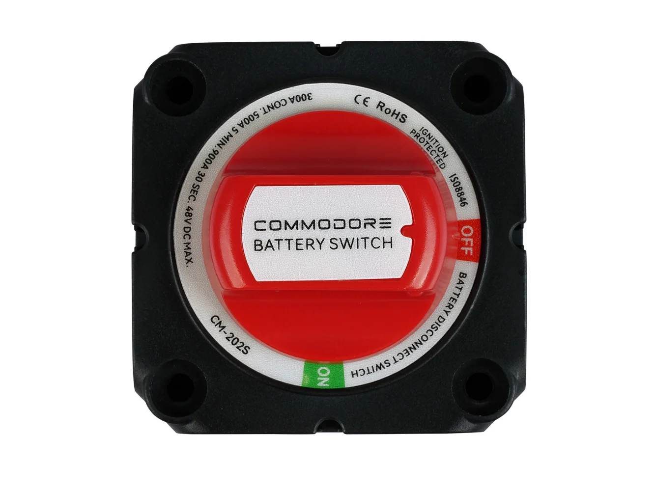 The Commodore On/Off Battery Disconnect Switch provides a reliable, durable, and safe solution for managing your marine or RV electrical systems. With a 300A continuous rating and a 900A cranking rating, this battery switch is designed to handle high-power applications, ensuring stable operation for your boat, RV, or off-grid systems. Its tin-plated copper studs offer superior conductivity and corrosion resistance, while the IP66-rated isolating cover provides robust protection against water and debris.