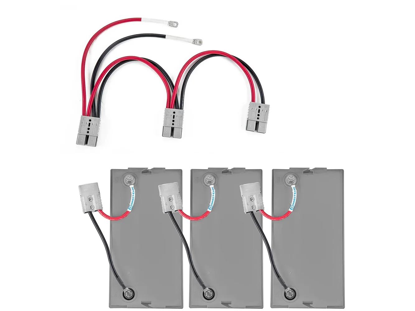 The Connect-Ease RCE312VRV allows connecting three 12-volt batteries in parallel to increase users' runtime when away from any wired, plug-in power source. The Connect-Ease (3) 12V parallel system was specifically designed with RV and off-grid enthusiasts in mind whose power requirements may also require a “solar” connection. The RCE312VRV is compatible with other solar products, and does provide a direct Heat Shrinkable accessory splice connection that can be used to input to a solar panel; other additional, third-party low amperage accessories can be added.