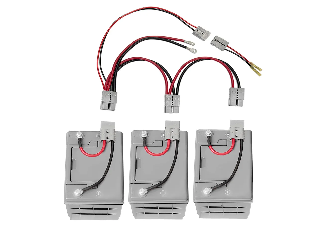 The Connect-Ease allows connecting three 12-volt batteries in parallel to provide users increased runtime when away from any wired, plug-in power source. The Connect-Ease (3) 12V parallel system was specifically with RV and off-grid enthusiasts in mind whose power requirements may also require a “solar” connection. It is compatible with other solar products, and does provide a direct Heat Shrinkable accessory splice connection that can be used to input to a solar panel; other additional, third-party low amperage accessories can be added.