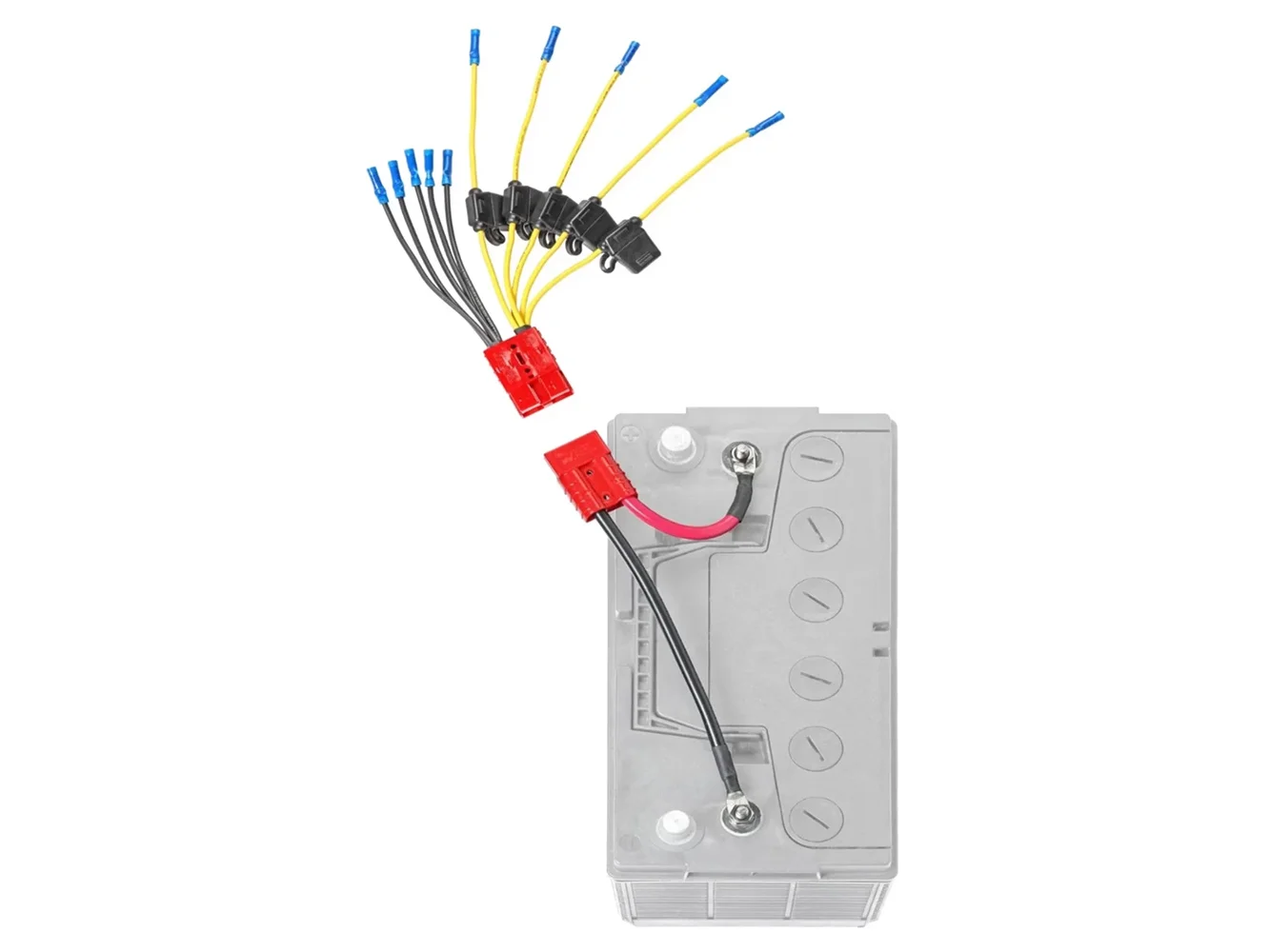 With fused connectors to safeguard expensive electronics, connect any marine equipment including Depth Finders, GPS Units, Radios, Lights, Pumps, Aerators, and more to one of the 14 AWG leads (10 AMP draw) to allow multiple electronics to be quickly and easily connected and disconnected to a battery. Remove expensive batteries for charging, storage, replacement, or theft protection in seconds.