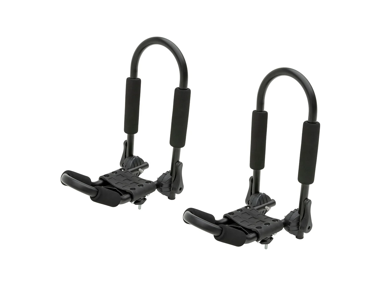 This kayak roof carrier is easily adjustable to accommodate virtually any size kayak. The arms fully rotate to be as wide or as narrow as needed to mount all kinds of kayaks, including single kayaks and double kayaks. The rotating arms feature notched pivots to securely lock into place incrementally, keeping the watercraft safely cradled over bumps, hills, and potholes.