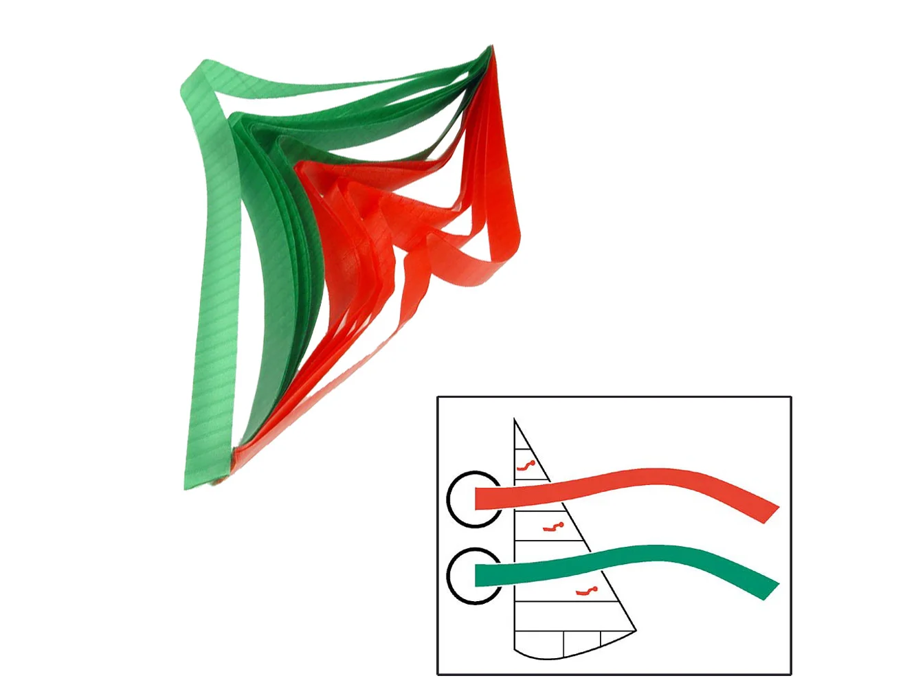 Lightweight, ripstop nylon Air-Flow Tels attach to sails with waterproof adhesive locator discs. No holes required. Tels show the air flow across the sails – allowing you to trim sails for maximum performance.