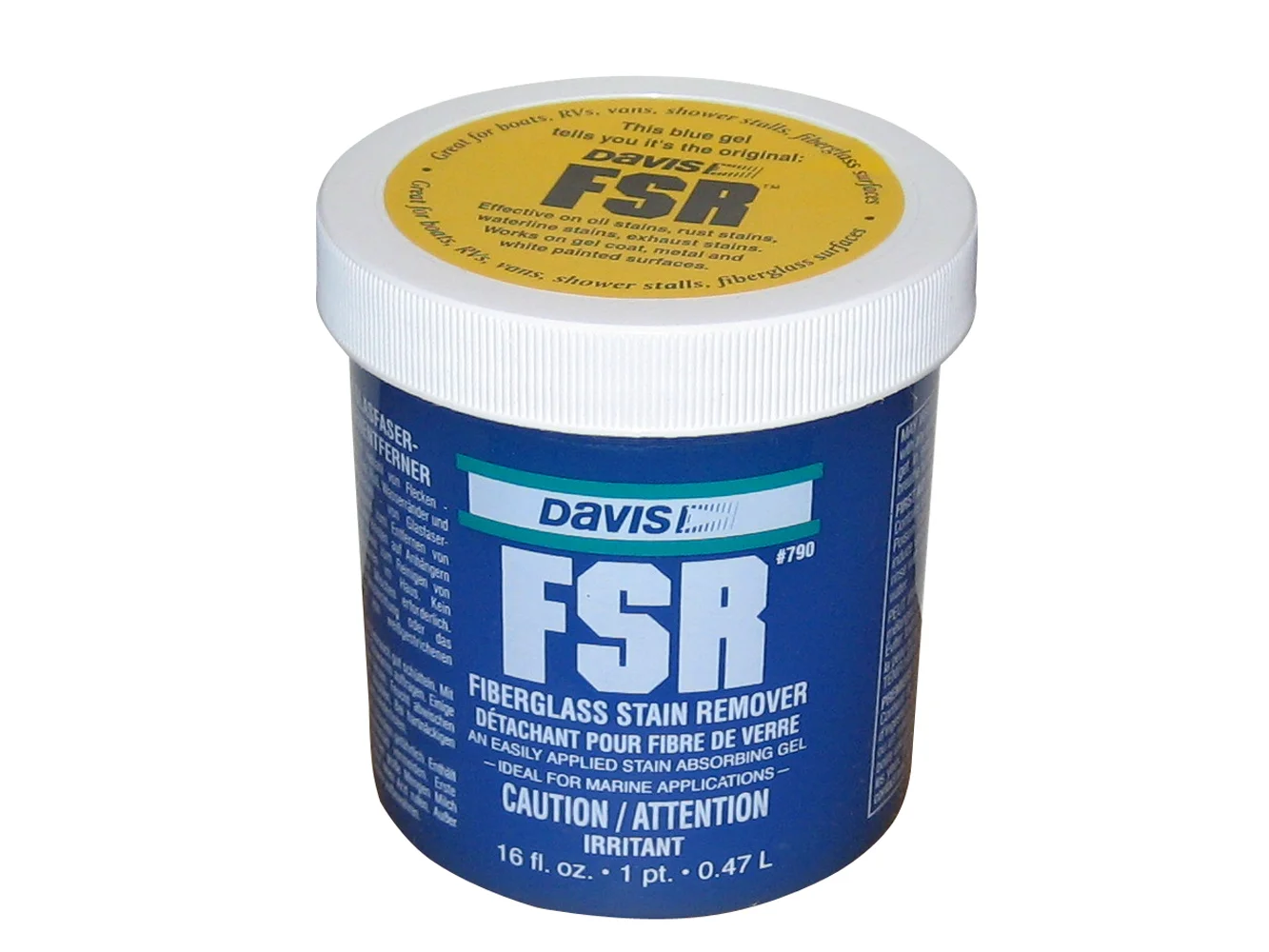 FSR (Fiberglass Stain Remover) is a unique stain absorbing gel that is ideal for removing oil, rust, exhaust, waterline and transom stains. It can also be used anywhere else fiberglass stains may crop up-shower stalls, furniture, etc. Use for removing road soil from trailered boats and recreational vehicles. Its non-abrasive quality means that it’s safe to use on white painted surfaces as well as on gel-coat. Just be sure to test a small area first to be sure FSR will not damage finish. Requires no sanding or compounding. Simply apply with a brush, sponge or cloth. Wait a few minutes and then wipe off or rinse.