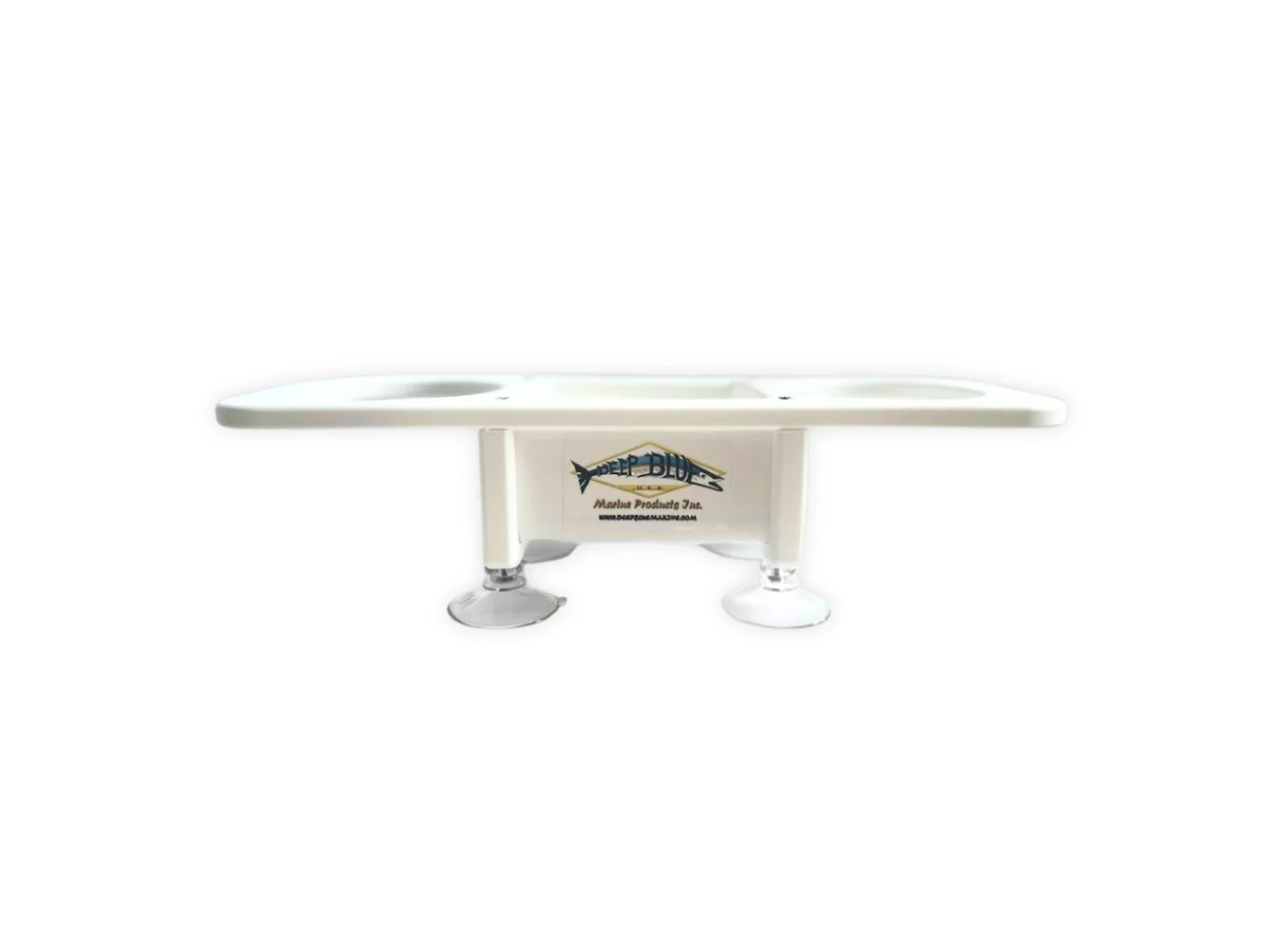 You asked for it, we developed it. A suction cup mounted double drink holder with center storage box. Ideal for cell phones, sunglasses, keys, tackle, etc…