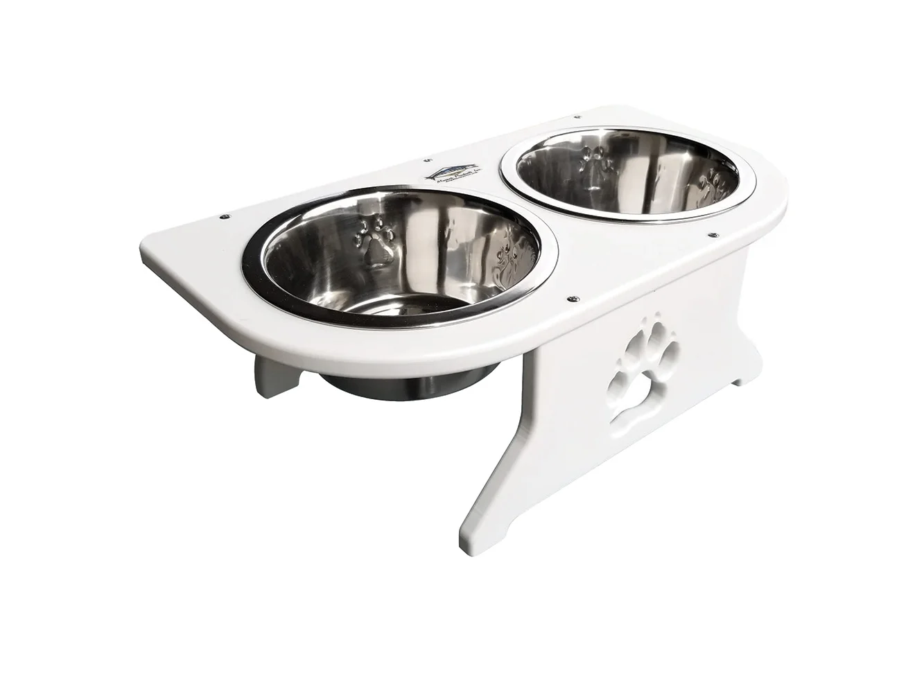 Don't forget about your buddy! Whether in the boat or back at home, these elevated dog dishes are better for your dog and attractive enough for the house or boat. FDA approved King Starboard means if your buddy chews on it no harm will come. Stainless bowls with embossed dog bones on the side mean both parts of the product are dishwasher safe.