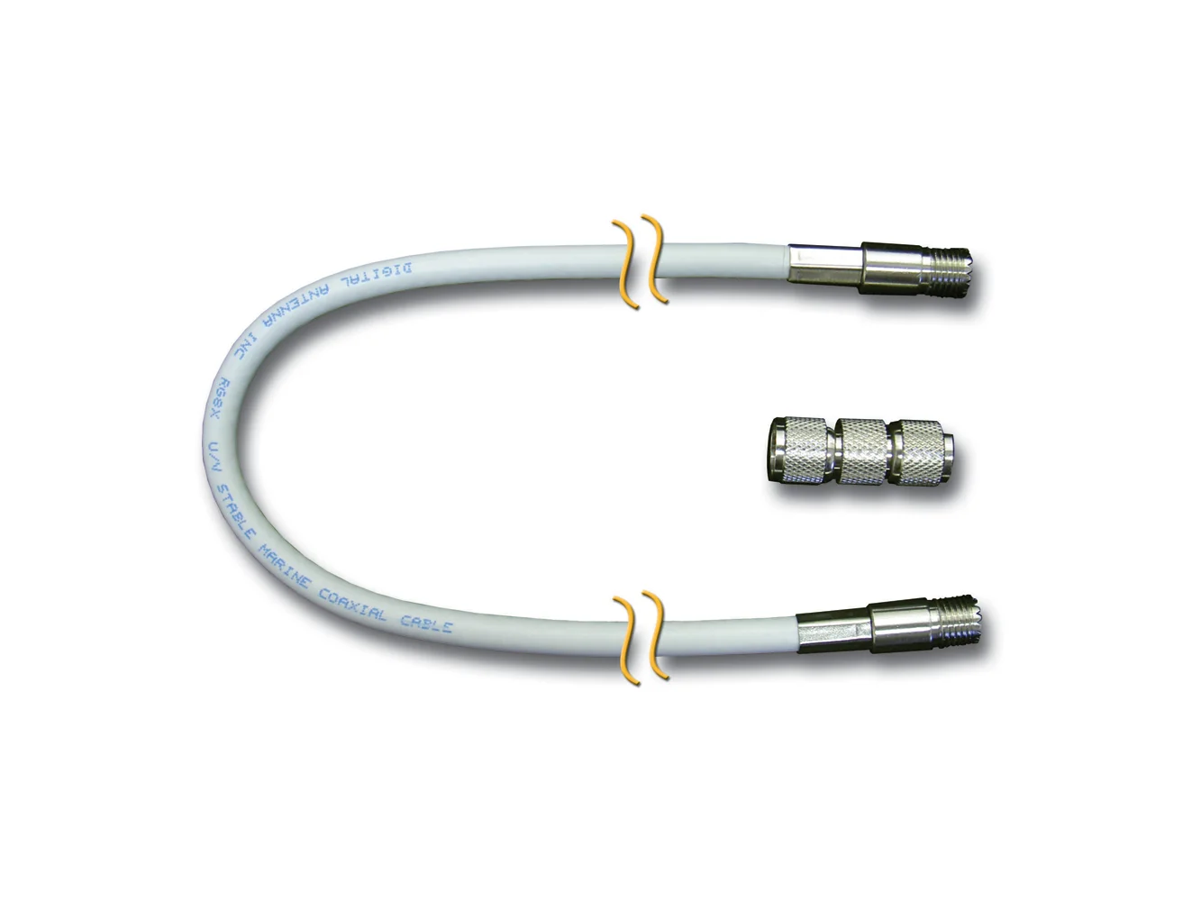 An easy solution to extending the cable on Digital Antenna’s 500 series VHF and AIS antennas. Simply connect the included double mini-UHF male adapter between the 500 series antenna’s mini-UHF female connector and the 500 series extension cable’s mini-UHF female connector. The cable’s other end accepts the 500 series antenna’s PL-259 adapter.