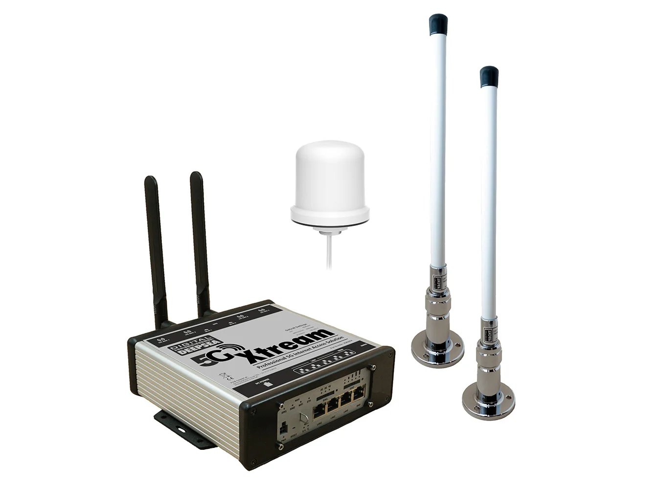 The Digital Yacht 5G Xtream is supplied as a complete solution with antennas, mounts, and cabling – all that’s additionally required is a cellular SIM.