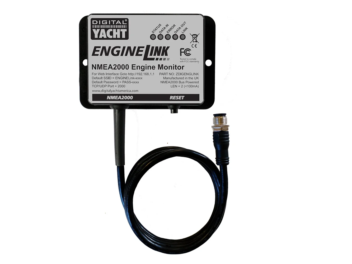 ENGINELink interface is an NMEA 2000 wireless device that allows mobile phones, iPads, and tablets to display engine data as well as provide a link to boat AIS, depth, and GPS information for popular apps such as Navionics, NavLink, iNavX, SavyNavy, AquaMaps and 100’s more. Now boaters can have boat engine data plus their favorite charting app displayed on their mobiles and tablets in real-time.