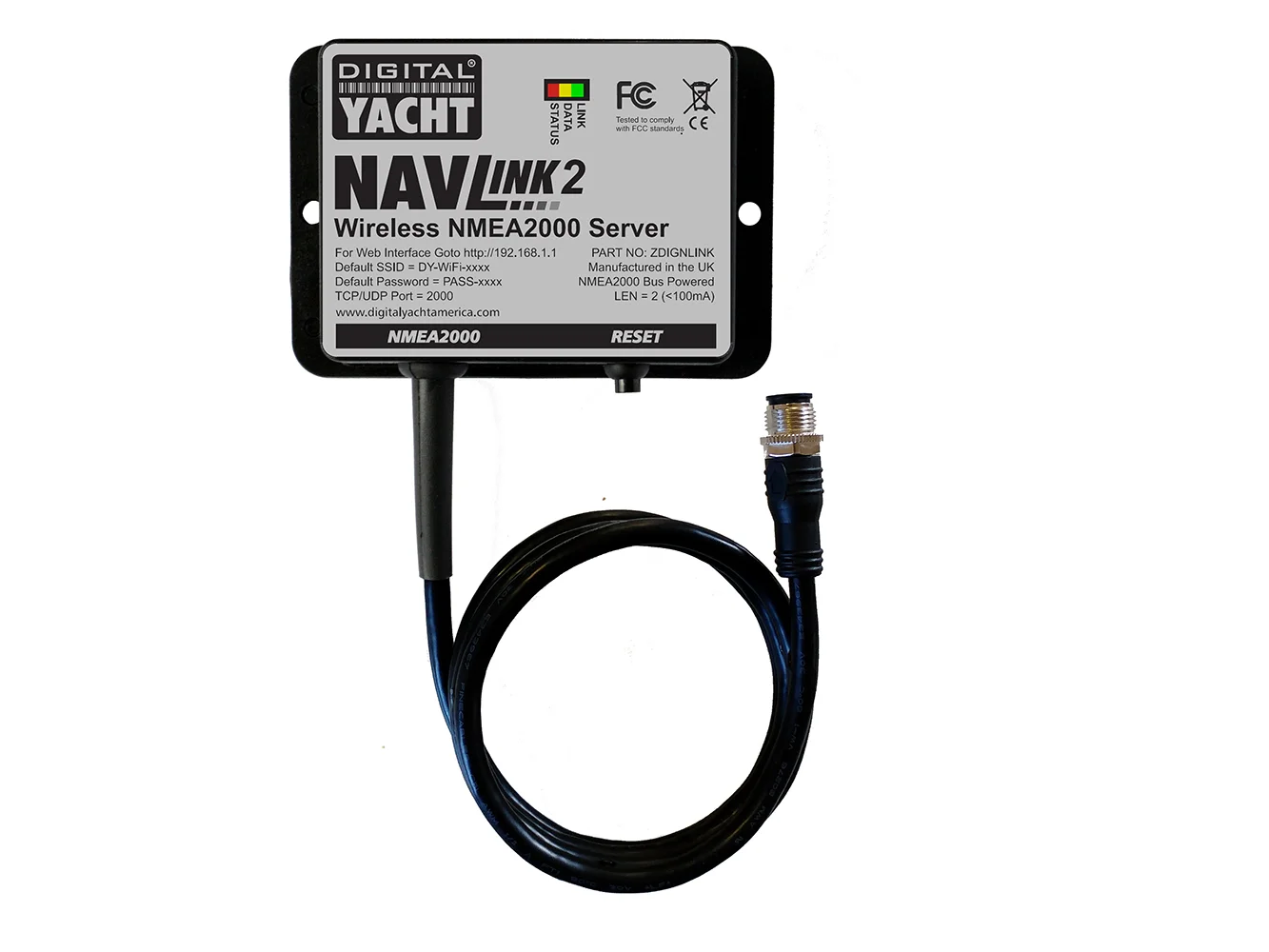 NavLink 2 is an easy to fit NMEA 2000 to Wifi server designed so that NMEA 2000 navigation data can be made available for apps on smartphones, tablets, iPads and PCs. Installation takes seconds as a result of direction connection to the NMEA 2000 back bone and self-powered from the data network.
