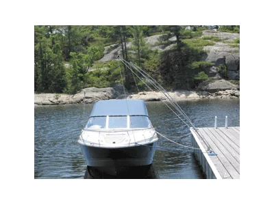 The practical alternative to marine railways, davits and lifts, these fiberglass Mooring Whips are exceptionally strong, attractive and do not obstruct your waterfront view. Each Whip mounts with a durable cast aluminum base with built-in cleat. These quality Mooring Whips act as a spring to maintain your boat at a safe convenient distance away from your dock to revent impacts caused by waves or the wakes of other passing watercraft. Complete with double braided nylon whip lines, spring lines, and stainless steel mounting hardware. Some mooring areas may be too rough for any type of tie-up system. Weight is more critical than boat length when selecting the correct size of whip.