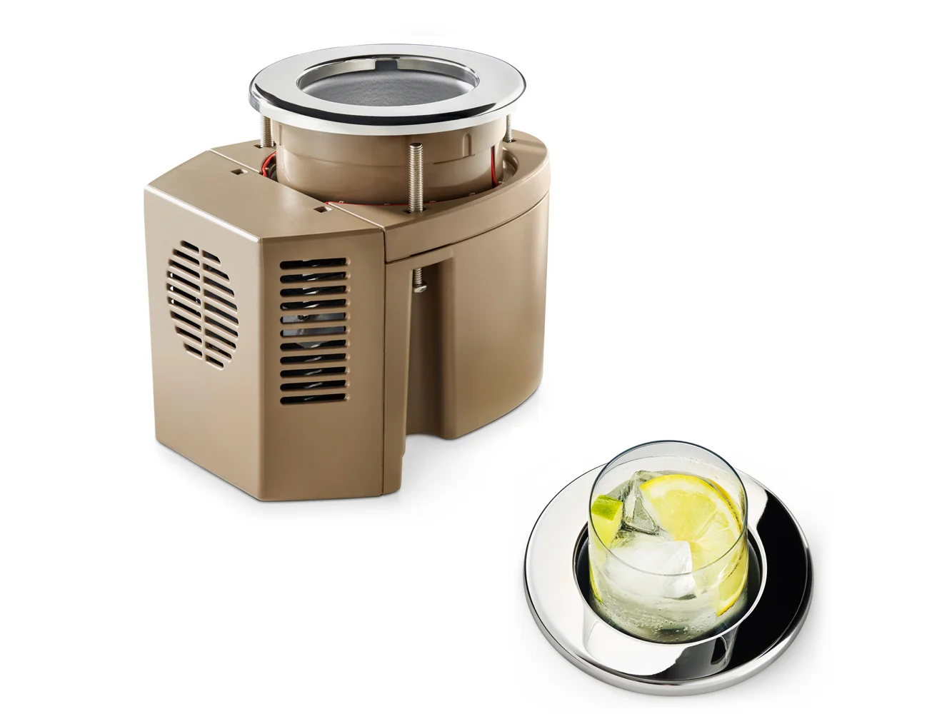 The Dometic Eskimo Cup is a thermoelectric refrigerated cup holder. It is designed to accommodate mounting into surfaces of various thicknesses.