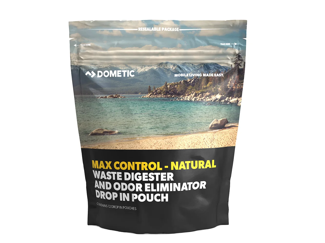 Dometic Max Control-Natural Holding Tank Treatment eliminates odors and effectively breaks down waste in your sanitation holding tank without the use of formaldehyde or bronopol. The fast-acting proprietary enzyme/bacteria formula enhances beneficial bacteria and will continue to work and benefit downstream systems like septic or municipal treatment facilities. A light, appealing fragrance means Max Control-Natural works for portable and gravity toilets and can be used in black or gray water tanks. California compliant and approved for use throughout North America. Use 4 oz. of liquid per 40-gallon black or gray water tank treatment.