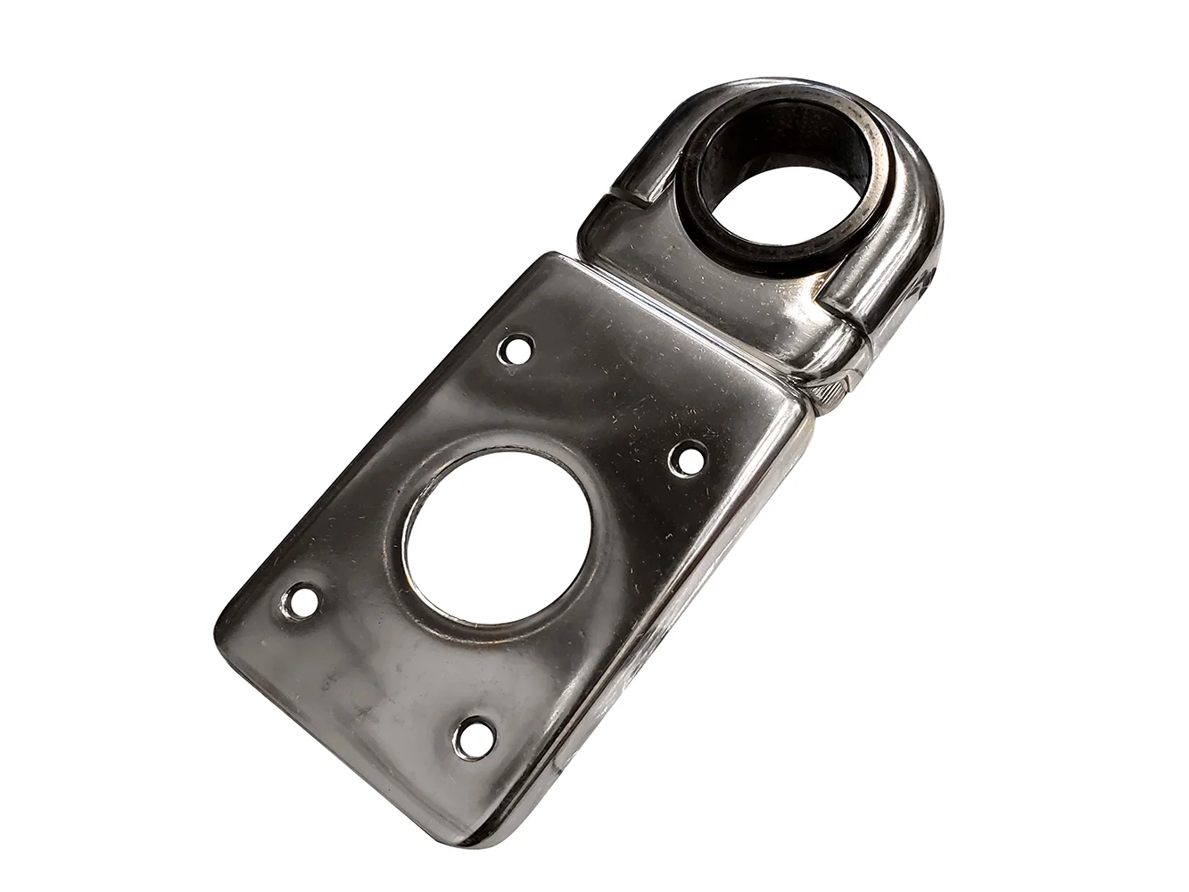 For angled guards, they rotate and lock in place with set screws so you can mount your drink holder level or adjust the angle of your instrument. Highly polished solid 316 Stainless construction with adapter sleeves for 1″, 1-1/8″ and1-1/4″ guard pipes.