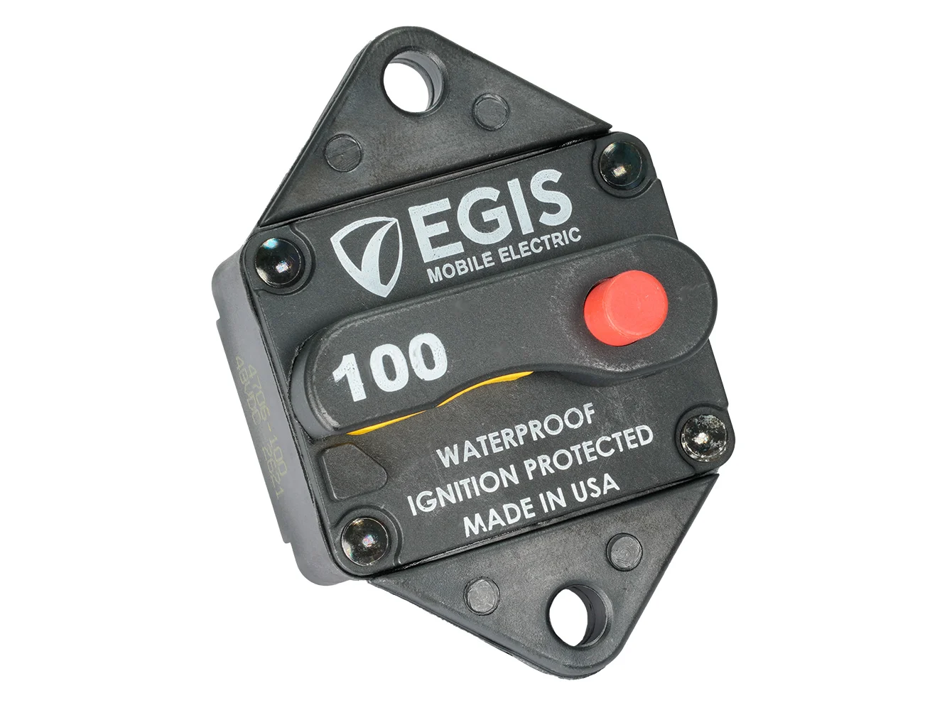 This 100A Egis panel mount circuit breaker protects electrical circuits from short-circuit events and over-current loads, preventing wire insulation overheating and subsequent destruction.