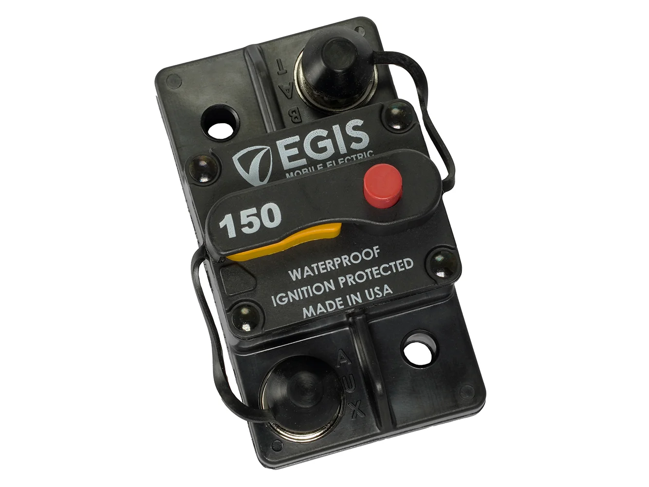 This 150A Egis circuit breaker protects electrical circuits from short-circuit events and over-current loads, preventing wire insulation overheating and subsequent destruction.