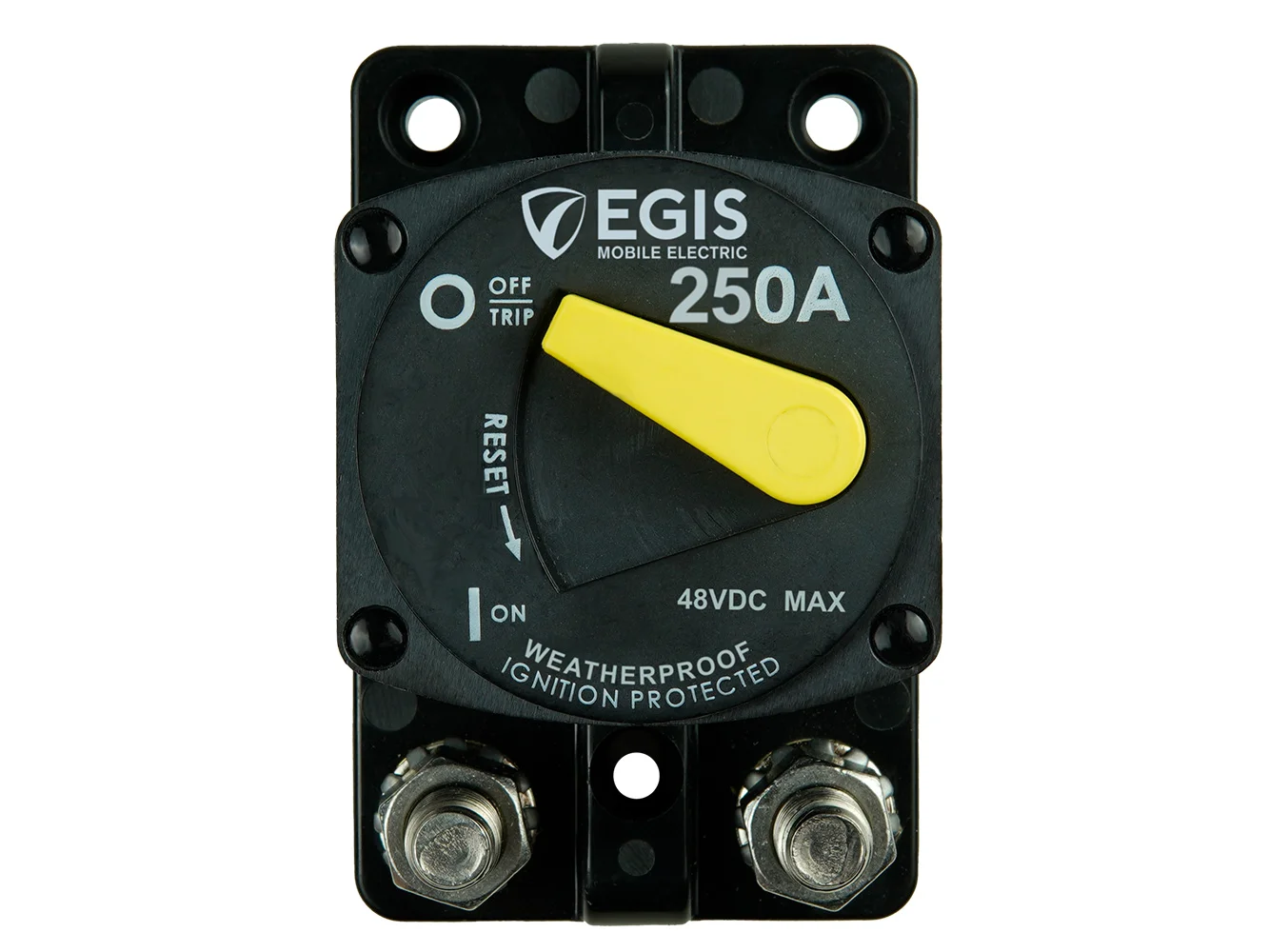 This 250A Egis circuit breaker protects electrical circuits from short-circuit events and over-current loads, preventing wire insulation overheating and subsequent destruction.