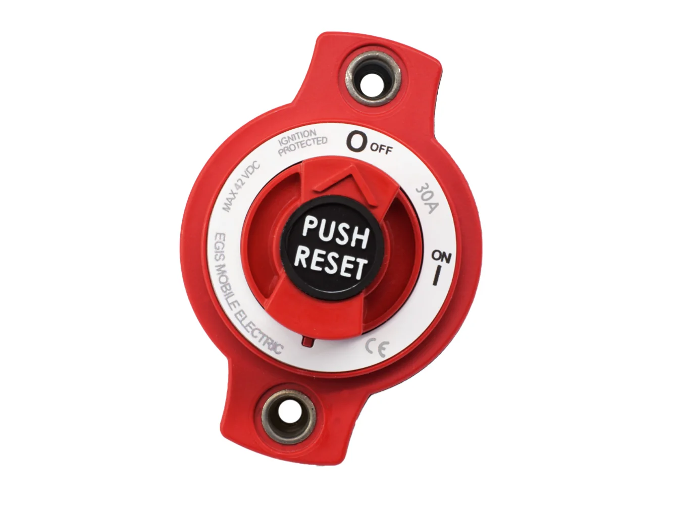 This 30A Panel Mount Mini Circuit Breaker is a 2-in-1 circuit breaker/disconnect switch that incorporates traditional battery disconnect switching (non-engine) and circuit protection. Trolling motor circuit switching applications are what this switch is best used for.