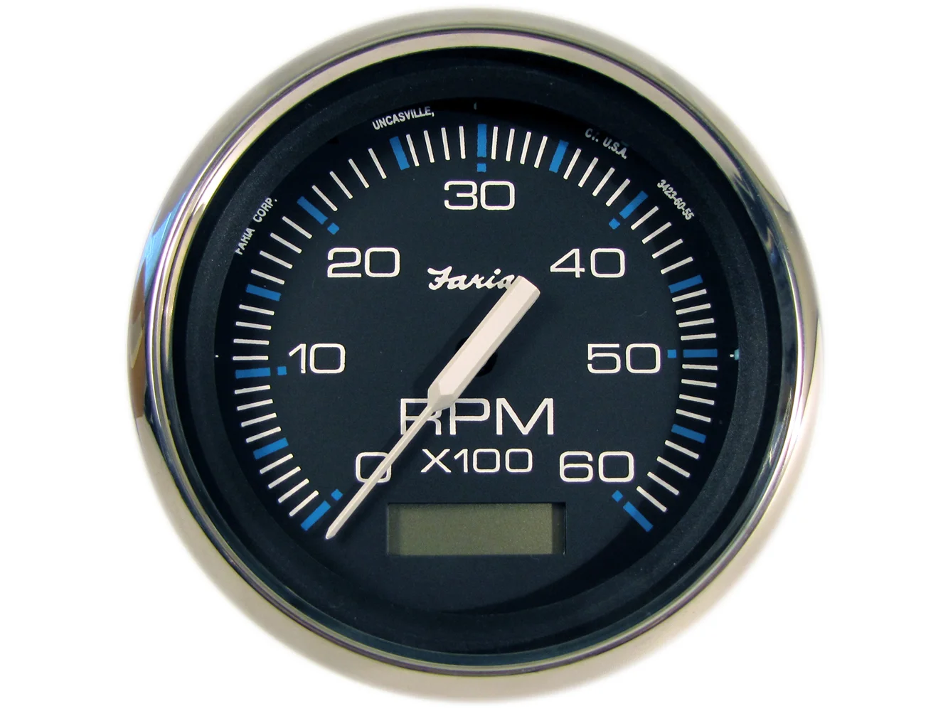 Chesapeake Black 4″ Tachometer with Hourmeter – 6000 RPM (Gas) (Inboard)