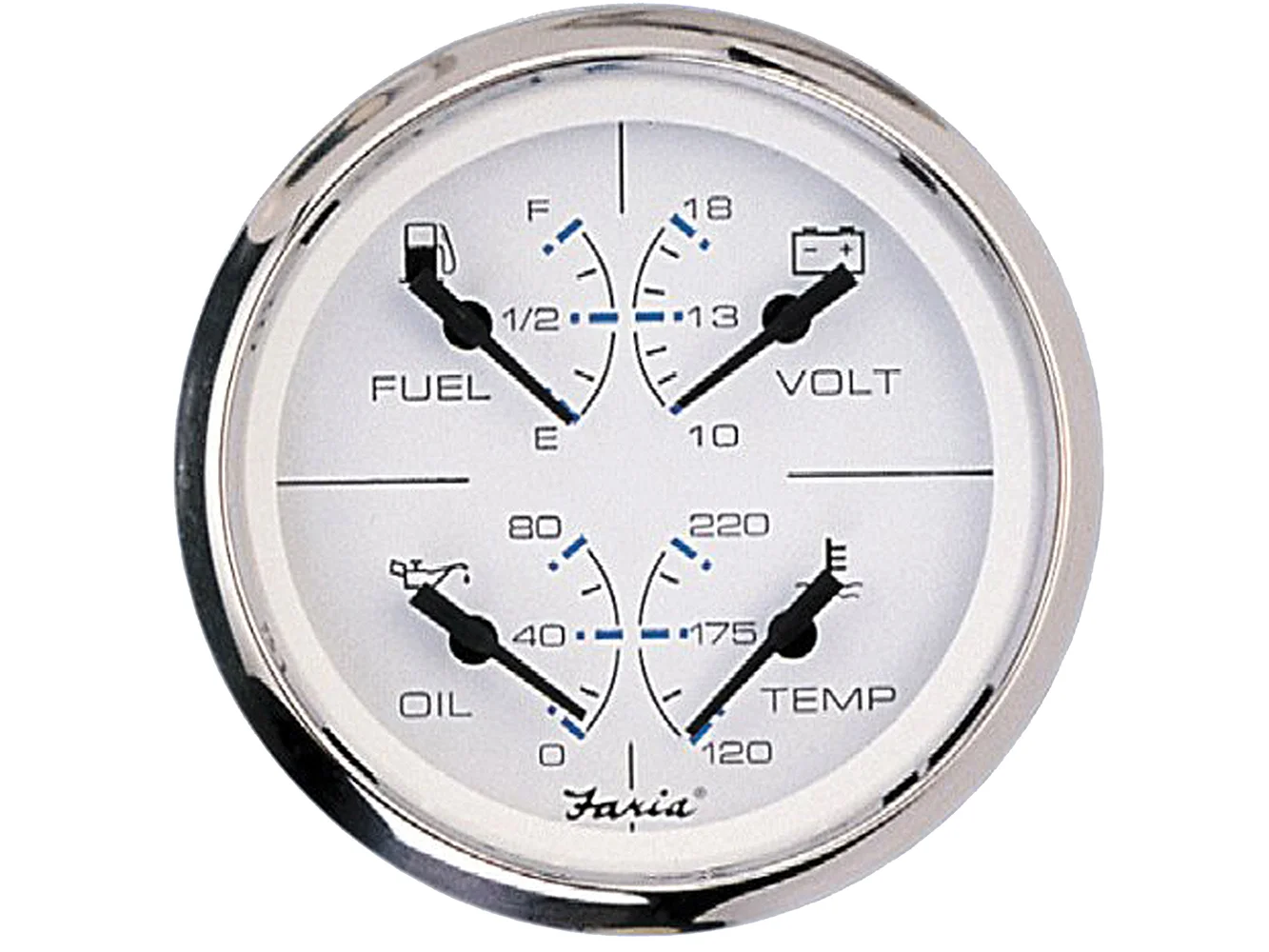 Perimeter-lighted White dial with stylish Blue and White graphics, polished stainless steel bezel, contoured White pointer and domed glass lens.