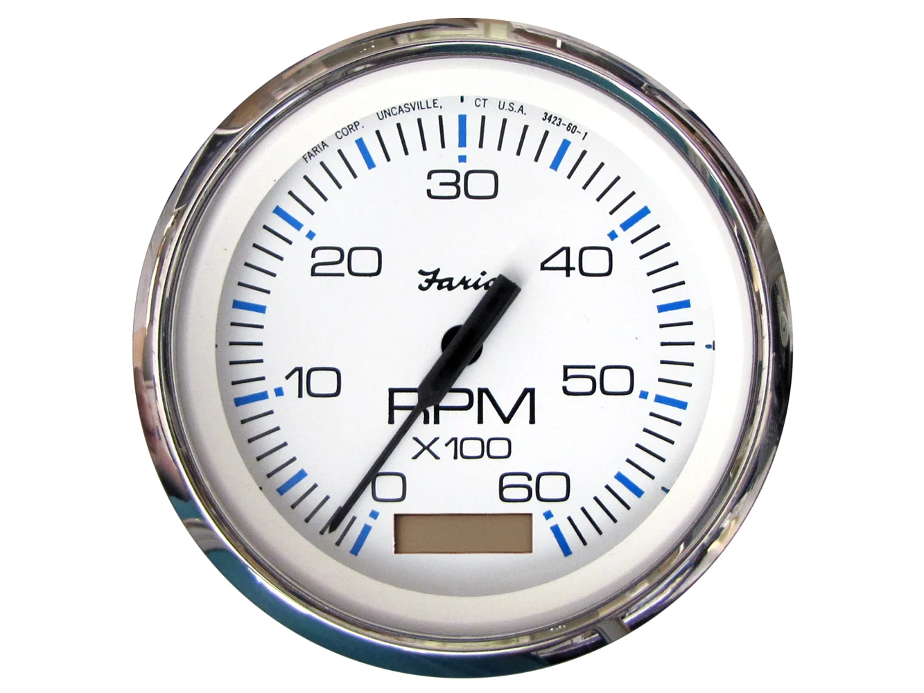 Chesapeake White SS 4″ Tachometer with Hourmeter – 6000 RPM (Gas) (Inboard)