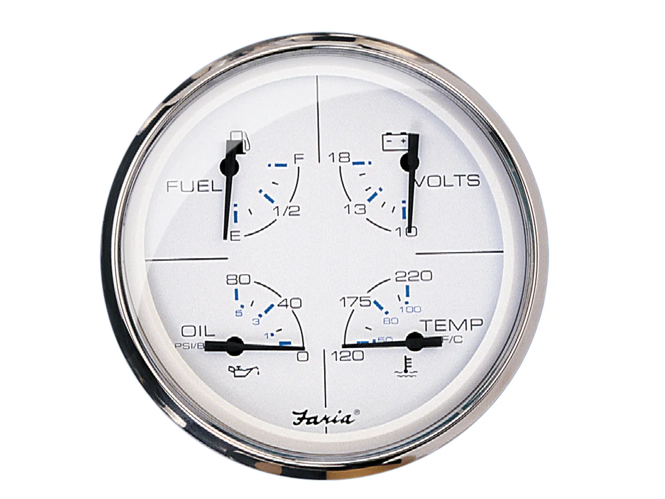 Perimeter-lighted White dial with stylish Blue and White graphics, polished stainless steel bezel, contoured White pointer and domed glass lens.