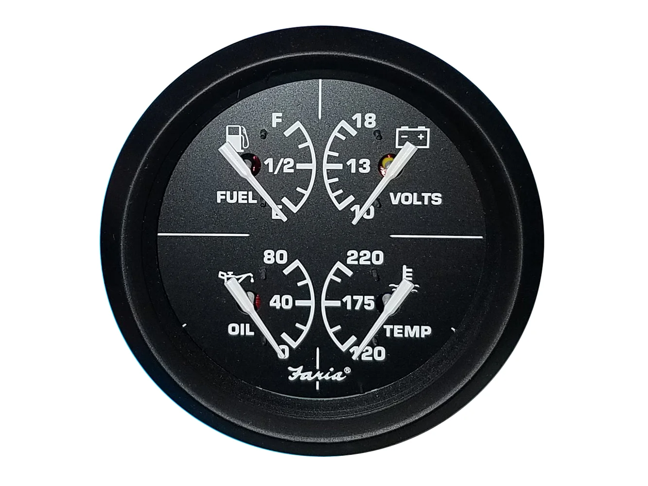 Euro Black 4″ Multifunction Gauge – Volt/Fuel/Oil/Water Temperature