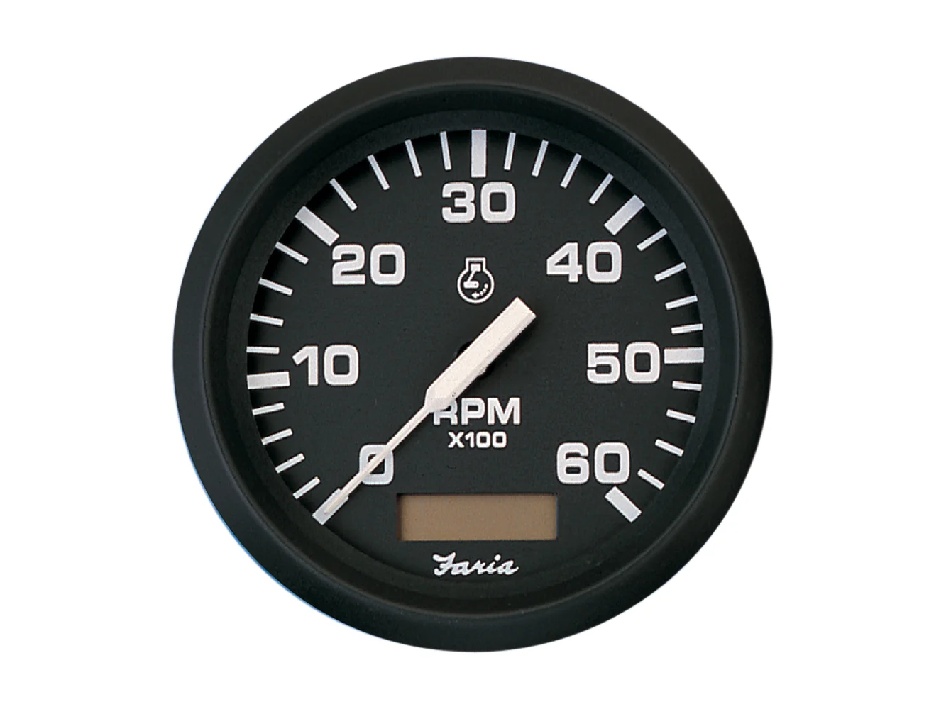 Faria Euro Black 4″ Tachometer w/Hourmeter – 6,000 RPM (Gas – Inboard)