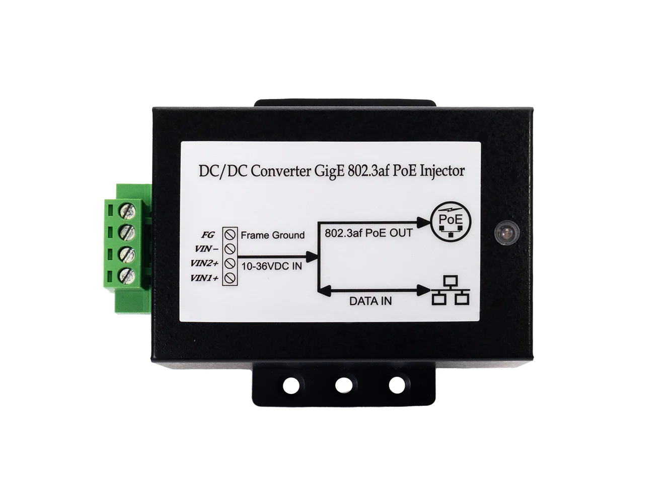 Power supply, power over Ethernet (PoE) injector. Compatible with FLIR joystick control units, Raymarine network cameras, and other devices requiring PoE power. This PoE injector is compatible with both 12- and 24-volt DC systems for maximum flexibility. This device also supports Gigabit speed networking to ensure the fastest connectivity possible through its standard RJ-45 data port.