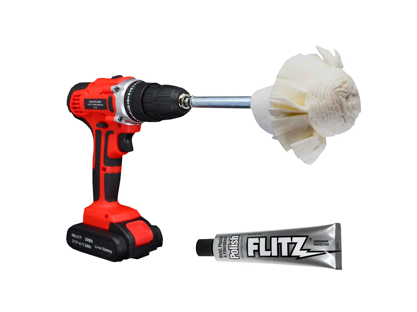 Got a motorcycle? Spoked wheels? This tool is a real time-saver. Clean & Polish the easy way. Power-rated for speeds up to 2000 rpm, it fits any 3/8-inch drill or air tool. Perfect for mag or spoked wheels or in and around the engine. The tool’s patented no-scratch 8-inch shaft extends your reach, protects your fingers and safely fits into tight areas. The 100% viscose felt material won’t tear like foam buffers. And the self-cooling means it can’t scorch or burn. This tool is guaranteed washable and reusable.