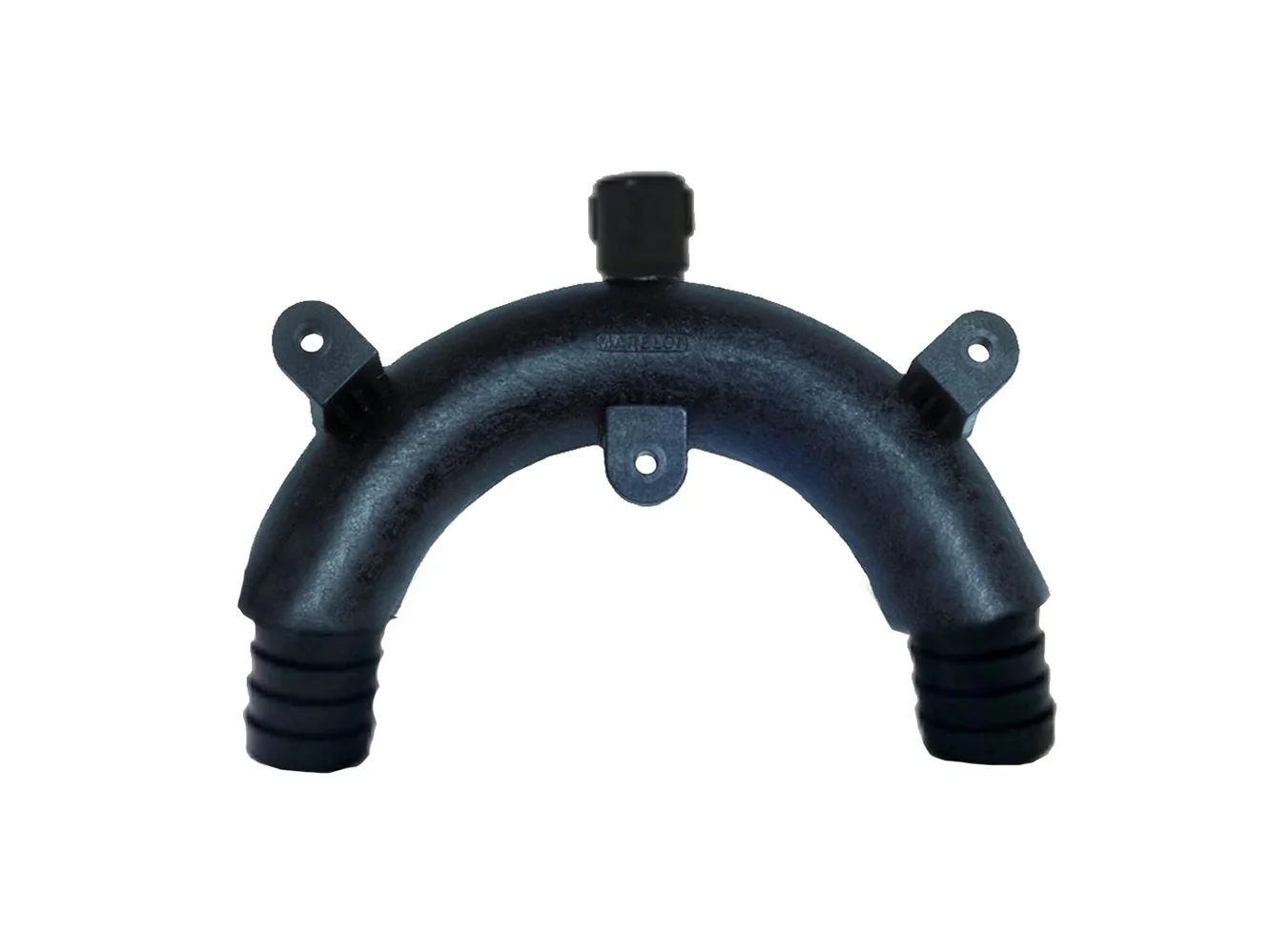 Installing one of our vented loops will ensure that fluids will not siphon from tank to tank. Vented loops are commonly used in the marine toilet system and engine cooling system. The simple valve system incorporated in the top of the loop allows air to enter the line when not in use, yet effectively seals as water or other fluid passes through. Molded in Marelon, neither vent nor loop will corrode. The duckbill one way valve is designed to seal properly if particulate matter is present in fluids.