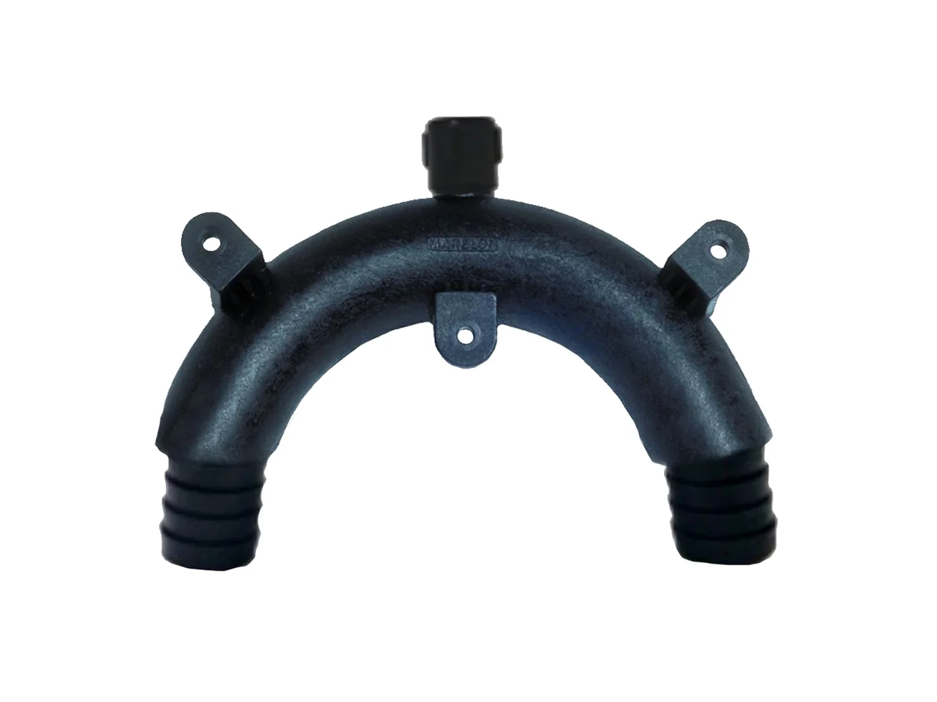 Installing one of our vented loops will ensure that fluids will not siphon from tank to tank. Vented loops are commonly used in the marine toilet system and engine cooling system. The simple valve system incorporated in the top of the loop allows air to enter the line when not in use, yet effectively seals as water or other fluid passes through. Molded in Marelon, neither vent nor loop will corrode. The duckbill one way valve is designed to seal properly if particulate matter is present in fluids.