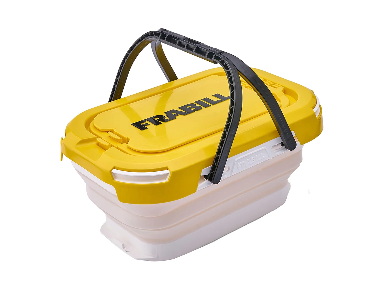 The Frabill Collapsible Bait Bucket available with or without an aerator is a convenient bait management solution. When collapsed, this bait bucket is the same footprint size as a Plano® 3700 Stowaway® making it easy to store in tackle bags and boat lockers. Multi-purpose handles come together at the top for ergonomic carrying or snap into the base for a rigid, spill-resistant bait container.