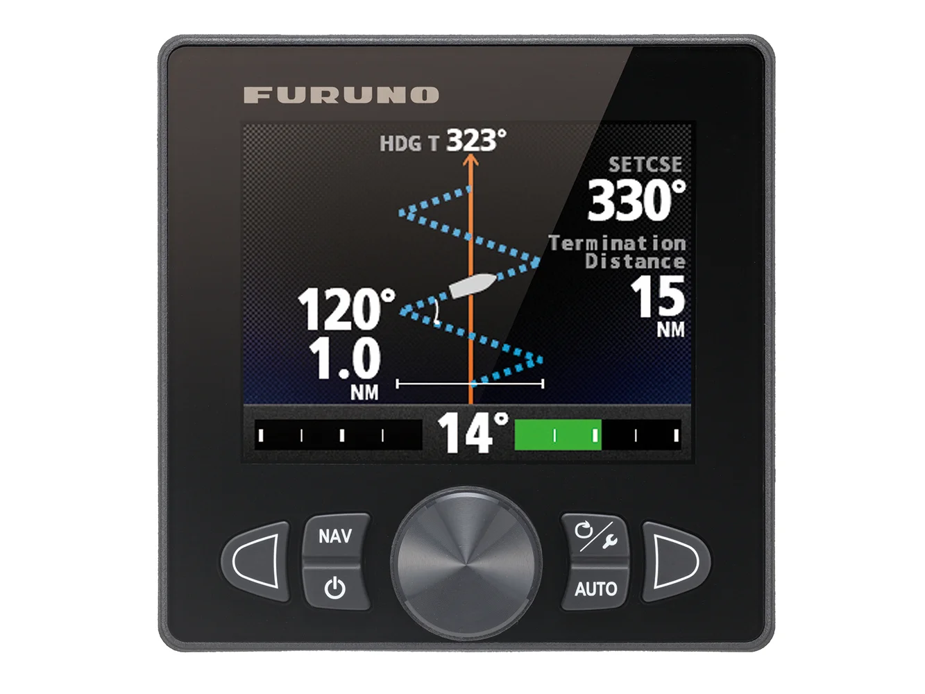FURUNO’s NavPilot is a revolutionary autopilot with a sunlight viewable display designed for a variety of vessels. It utilizes a self-learning and adaptive software algorithm, and plays the ultimate role in course-keeping capability. NavPilot dynamically adjusts essential parameters during navigation, such as vessel speed, trim, draught, tide and wind effects, dead band, weather and more. These parameters are stored in system memory and continuously optimized to make the NavPilot more versatile.
