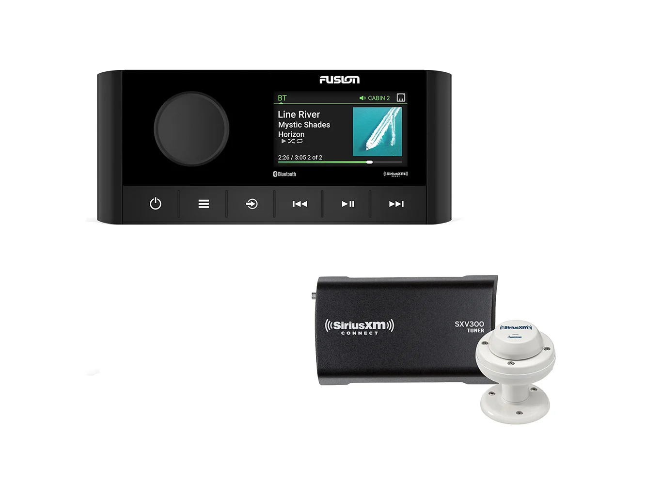 This kit combines Fusion’s MS-RA210 Stereo with SiriusXM’s SXV300 Connect Tuner and Marine/RV Antenna