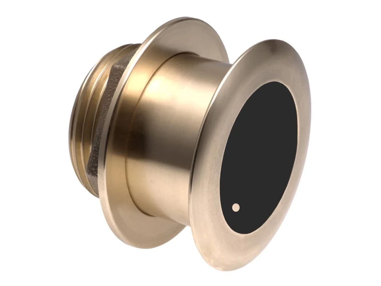 Garmin’s bronze, thru-hull mount transducer with 20° tilt provides depth and temperature data. Garmin’s transducer has an operating frequency of 50 or 200 kHz and mounts on a 16-24° deadrise angle.