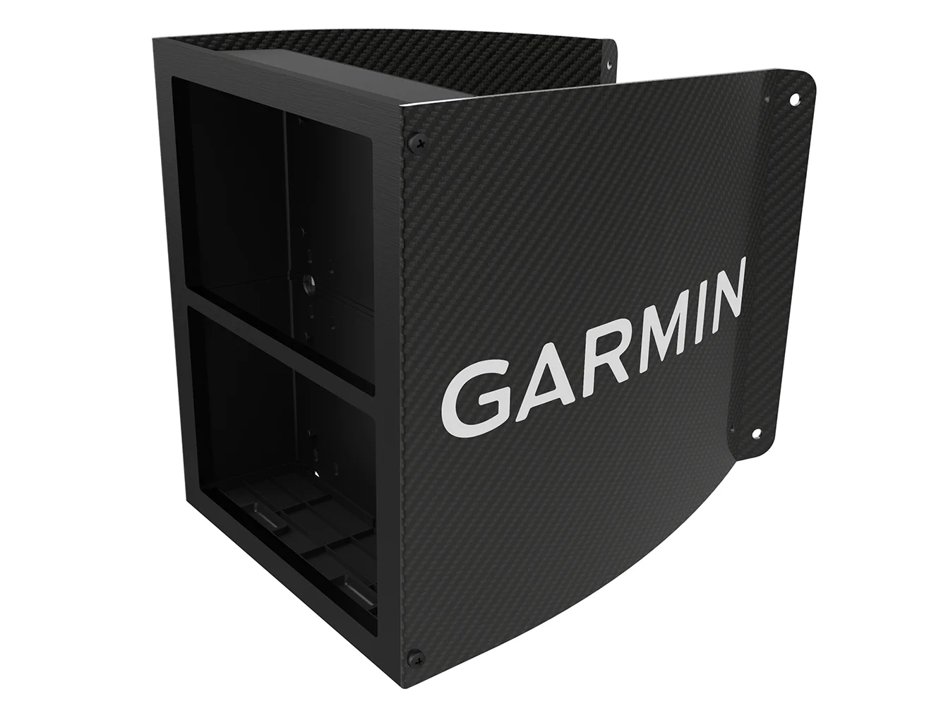Mount 2 GNX™ 120 instrument displays to the mast with this carbon fiber bracket. It offers a sleek, compelling industrial design, providing a “glass mast” look.