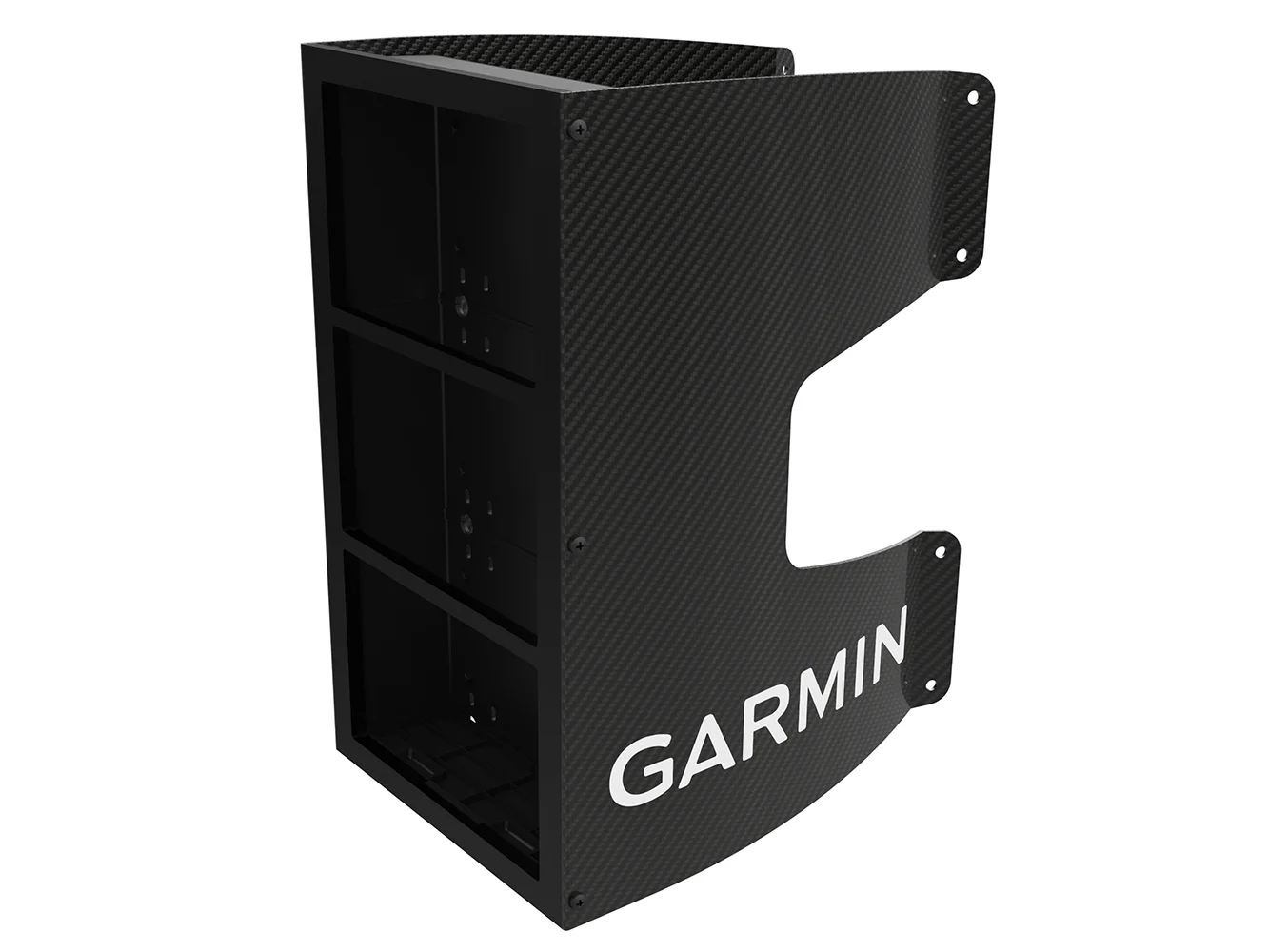 Mount 3 GNX™ 120 instrument displays to the mast with this carbon fiber bracket. It offers a sleek, compelling industrial design, providing a “glass mast” look.