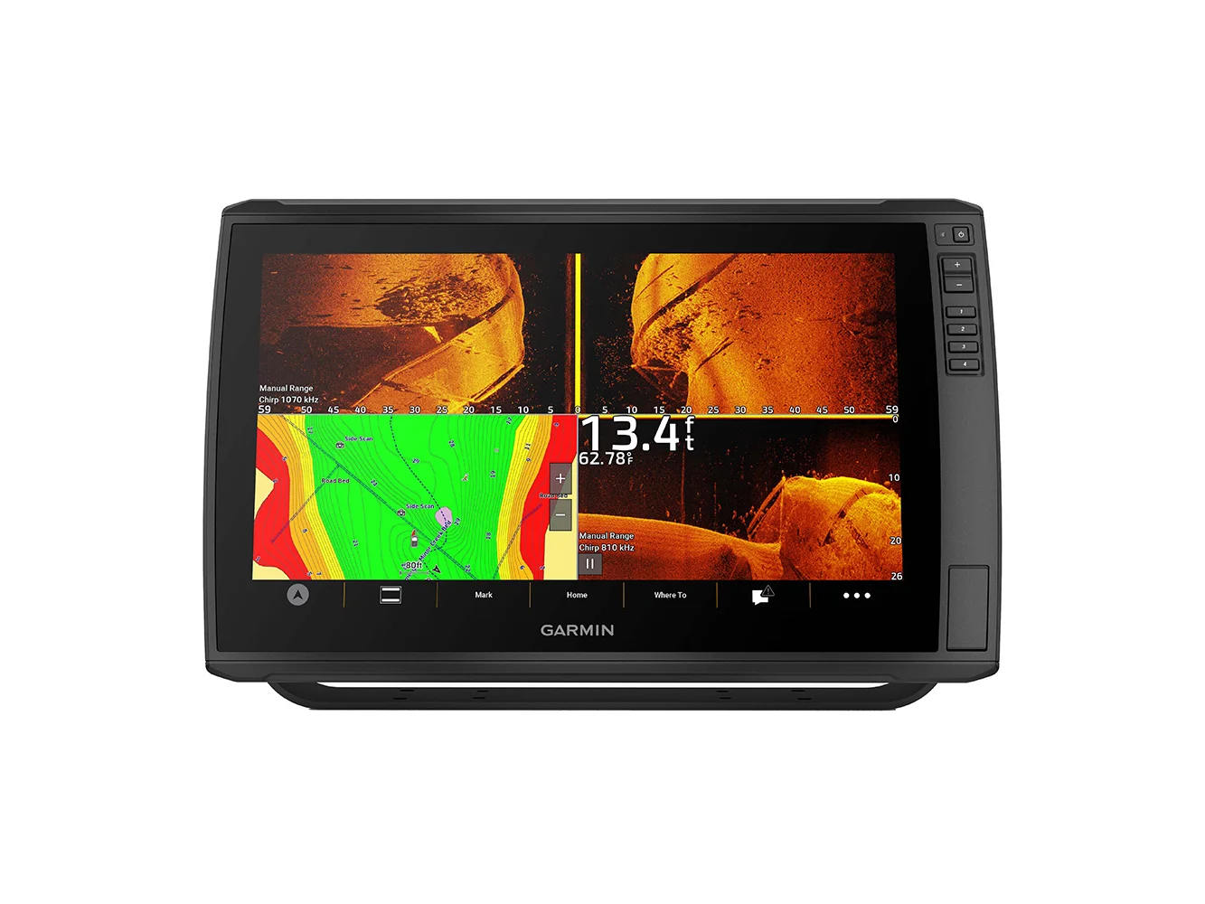 Select models are bundled with a GT56 transducer that provides Garmin CHIRP traditional sonar and Ultra High-Definition ClearVü™ and SideVü™ scanning sonars for photo-like images of what’s beneath the surface.